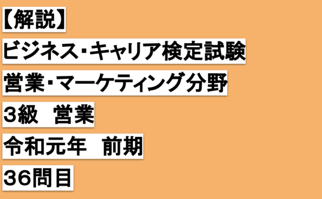 解説:ビジネスキャリア検定3級営業(令和元年前期)
