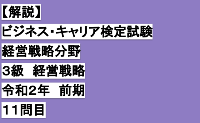 ビジネスキャリア検定3級経営戦略 令和2年前期11問目の解説です。