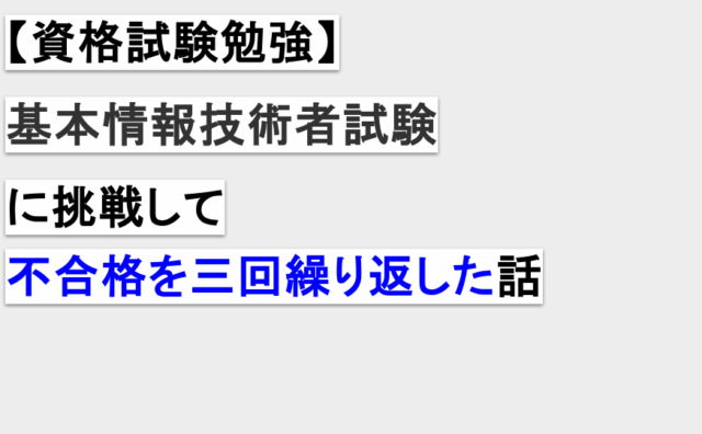 資格試験勉強の体験記【試験資格勉強】基本情報技術者試験に挑戦して不合格を三回繰り返した話 基本情報技術者試験に三回挑戦して全て不合格でした。どのような勉強方法となぜこれだけ繰り返したかを書いています。 2025.10.18資格試験勉強の体験記