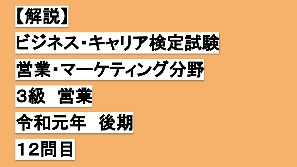 令和元年度 後期 ビジネス・キャリア検定試験 営業・マーケティング分野 3級 営業