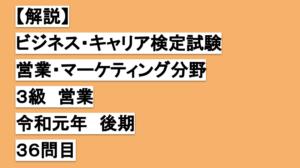 令和元年度 後期 ビジネス・キャリア検定試験 営業・マーケティング分野 3級 営業