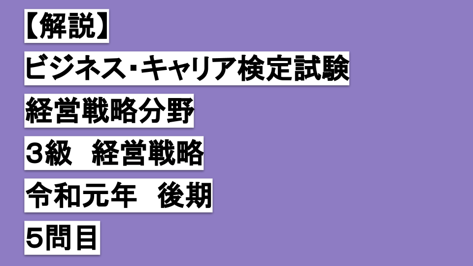 令和元年度 後期 ビジネス・キャリア検定試験 経営戦略分野 3級 経営戦略