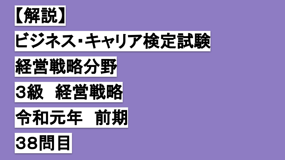 令和元年度 前期 ビジネス・キャリア検定試験 経営戦略分野 3級 経営戦略