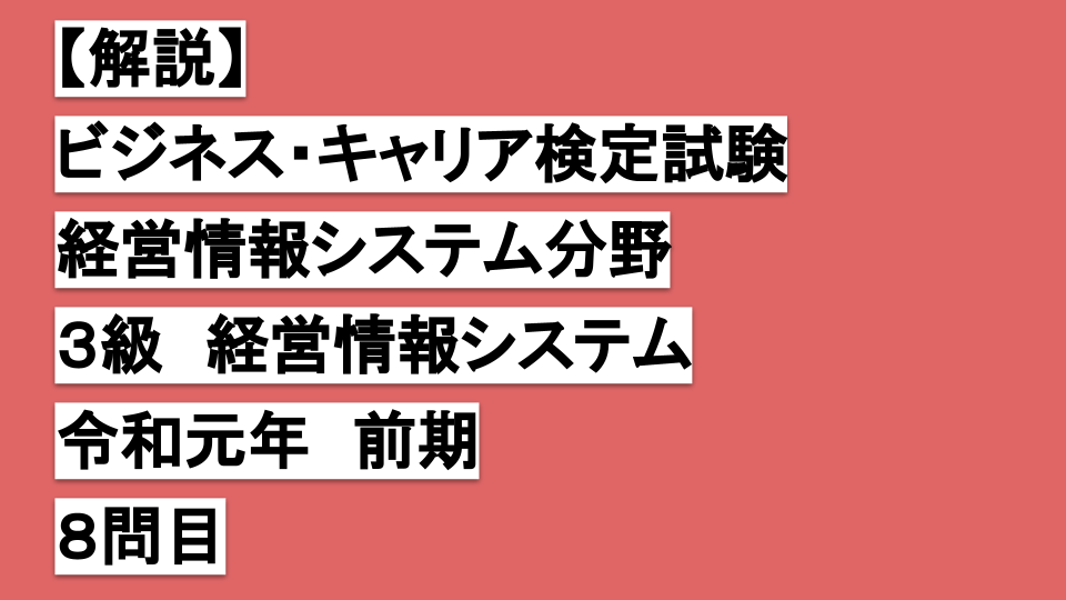 令和元年度 前期 ビジネス・キャリア検定試験 経営情報システム分野 3級 経営情報システム