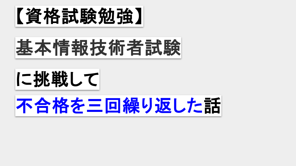 2024年9月7日、2024年10月12日、2024年10月12日と計三回基本情報技術者試験に挑戦して不合格でした。ここでは勉強方法となぜこれだけ繰り返したかを書いています。